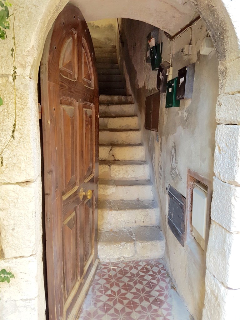 An old lady wheeled a bike as old as herself down these steps and pedalled off.