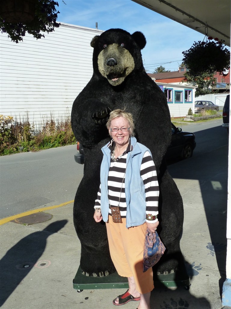 Ketchikan – The Salmon Capital of the World ‘ was lovely. Another relatively modest town, but in a spectacular ‘nature in the wild’ setting it contains the largest collection of totem poles in the world. Local residents were easily distinguished from the loud, vulgar, bloated specimens who’d recently waddled down cruise ships’ gangplanks; we found them polite, charming and very good company. Even so, we could only imagine the privations of living here all year round. Pretty scenery and totem poles apart, in the depths of an Alaskan winter, as Marigold often remarks, ‘and then what do you do?’
