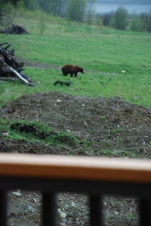 One night in a log cabin in the mountains we heard a scuffling sound on the decking just outside the entrance door. ‘I suppose you think that’s a bear,’ I said to Marigold, opening the door to investigate. I closed it again pretty swiftly on finding it was indeed a bear. A big one. In the morning we discovered we’d left both windows and the (passenger) door of the car open all night. There was a large moose outside the next cabin, but the bear had at least moved far enough away for us to make our getaway.