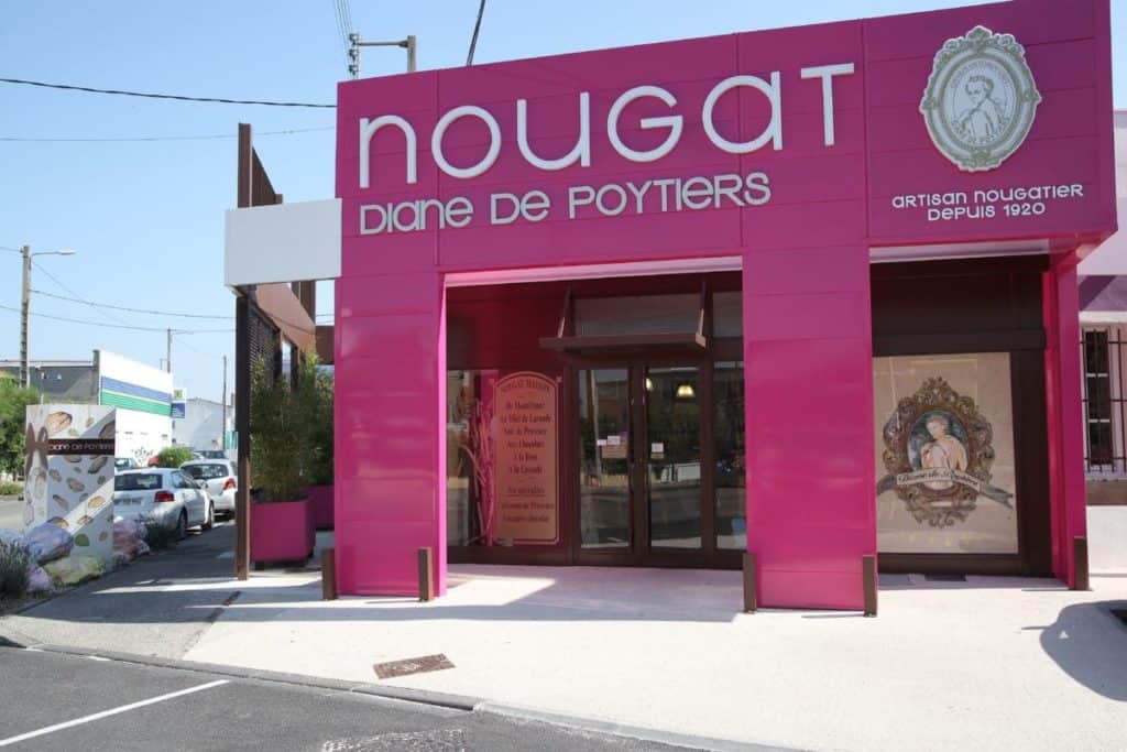 We decided to give the Palais des Bonbons et du Nougat a miss. It’s a block of several museums covering such topics as nougat, sweets in general and toys. We decided our age group was not their target audience. It was impossible to miss a bright pink building on the main road. Diane de Poitiers are well known nougat producers and a ton of nougat a week is churned out inside this pink monstrosity. Like the Palace of Bonbons they offer guided tours but we didn’t go there either.