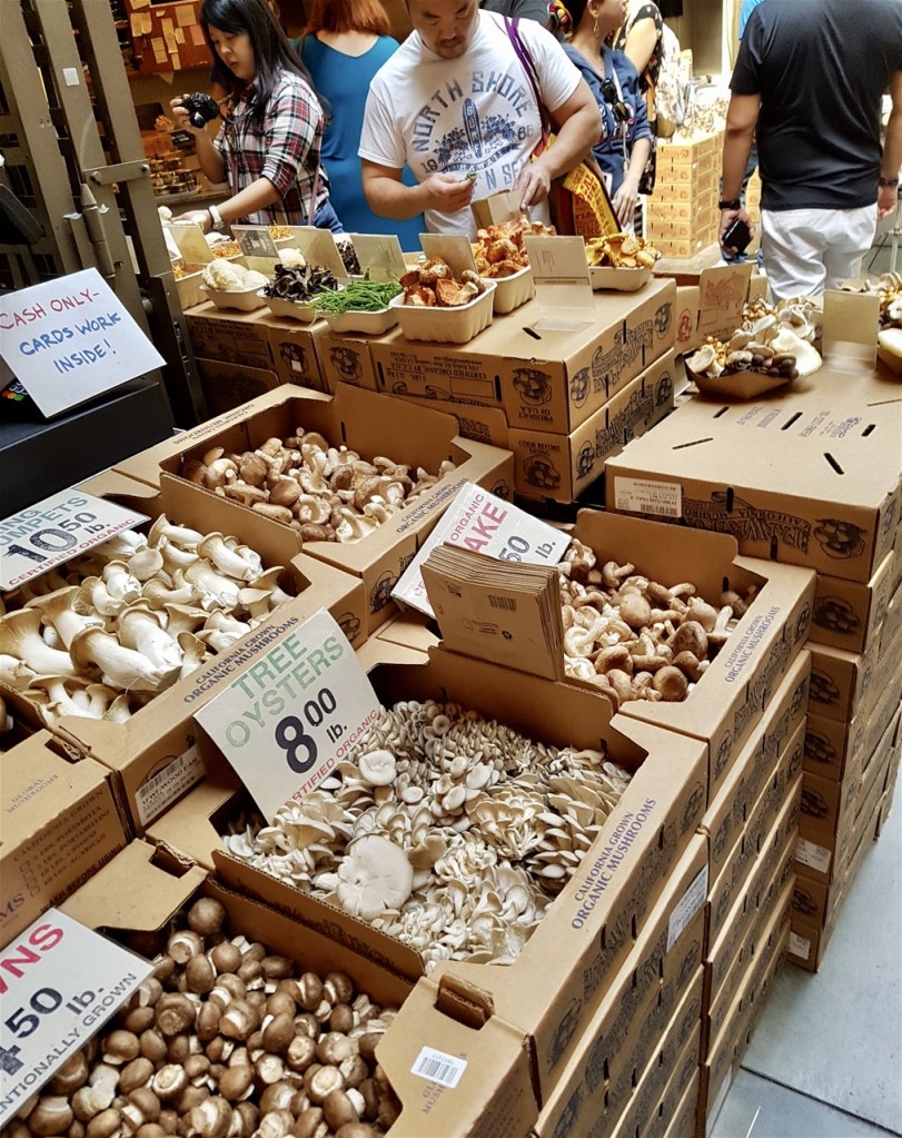 Went in the tram to Fishermans Wharf, very early as it was going to be so hot everybody in California will die, according to the girl on the hotel information desk. Brilliant Farmers Market. Full of everything good for you, huge fruit, honey, street food, and smoothies made out of fruit I have never heard of. Some of it looks like sick. Had some great tastings. It is the hottest it has been forever here. People are dying on the pavements and are being swept up and fed to the pelicans.