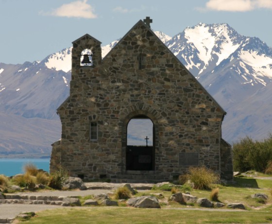 Lake Tekapo almost defies description. Van Gogh would have struggled to replicate the sheer depth of that milky turquoise shade that renders a description of the lake as merely ‘blue’ as totally inadequate. The Church of the Good Shepherd on the lake shore is beautiful and still in regular use as a church ‘ there was a wedding in progress as we arrived. Those wedding photos will be treasured mementos; not just the lake and the Southern Alps as a backdrop but a glimpse of Marigold as well. Early photobombing.