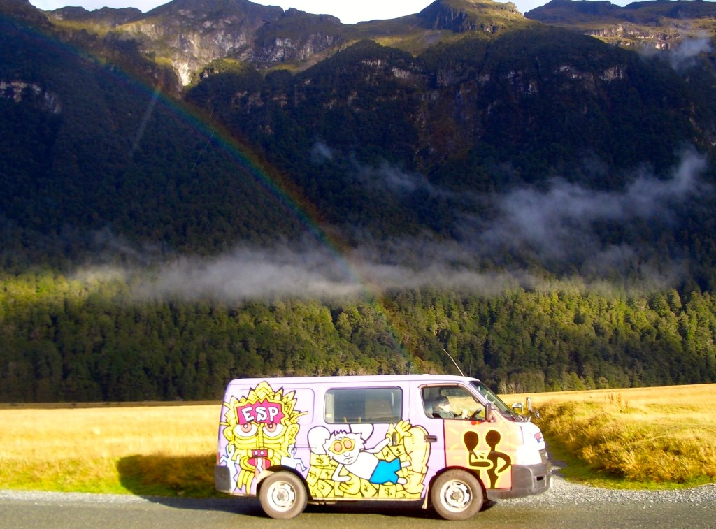 Our nearest neighbours were living in a converted bus so our pathetic little van looked even more ridiculous than usual. There were several other huge van conversions as well. We compared sandfly experiences with them, about the only thing we had in common. One couple told us they had ‘done’ Milford Sound twelve times and this had been the only occasion it hadn’t been pouring with rain. They’d still loved it though.