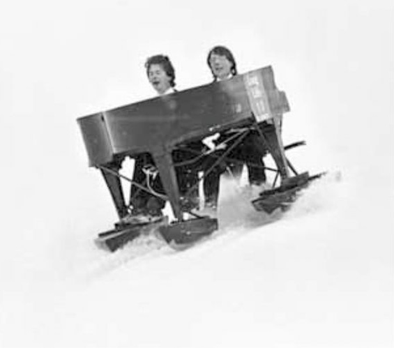 The DSC performed numerous stunts, almost invariably wearing full evening dress. I remember them skiing down the Matterhorn on such ill suited items as bicycles, a rowing skiff and while playing a grand piano. I even managed to locate a photo of a guest member, Nigella Lawson, playing croquet under unusual circumstances, being carried around in a sedan chair.
