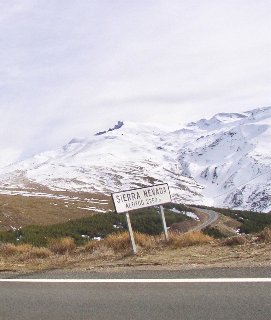 ‘Change of plan,’ I mused and turned inland towards Granada. By the time Marigold woke from her slumbers, urgently proclaiming need of coffee, we were high in the Sierra Nevadas, the air was cool and fresh and there wasn’t a cafe for miles. There was snow all around, still enough to attract the ski brigade, but only just over an hour ago we were alongside the Mediterranean and we’re now surrounded by a winter wonderland scene good enough to grace a Christmas card.