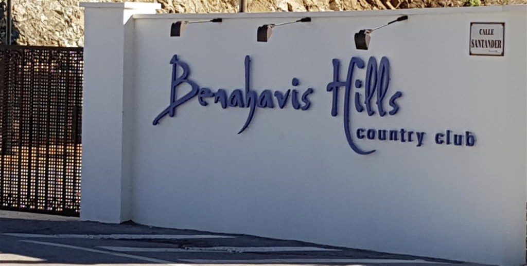 Hills Cafe is really a restaurant, not a cafe at all, and is part of the Benahavis Hills Country Club. We drove up a very steep hill, behind a Fiat 500, and on one of the very tight bends the Fiat stopped, stalled and started to roll back down the hill towards us. G didn’t panic, but I did. Quite a lot. It stopped about an inch away and the driver told his passenger to get out and walk, obviously because she was so heavy.