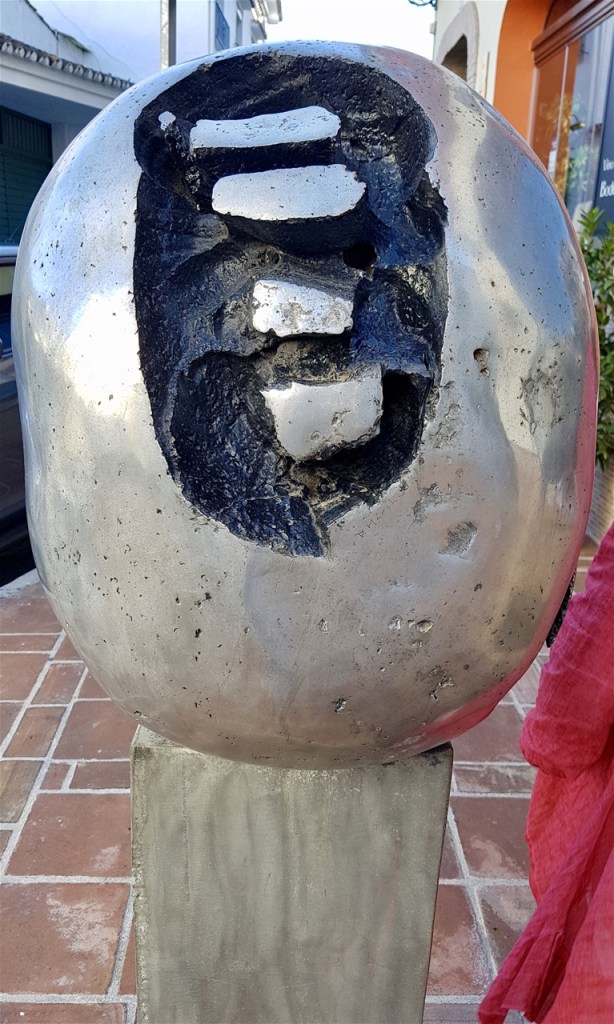 We went into town and parked in a space after only driving around for five hours, well it seemed like five hours. It’s all narrow winding streets and little squares, all very pretty with dozens of restaurants and lots of artists. The best known is a man we met once, not that I suppose he remembers. David Marshall, who must be in his 80s by now, still works as a sculptor, mostly in metal. He was a welder, from Scotland, but found out he had artistic talent and now sells all over the world.