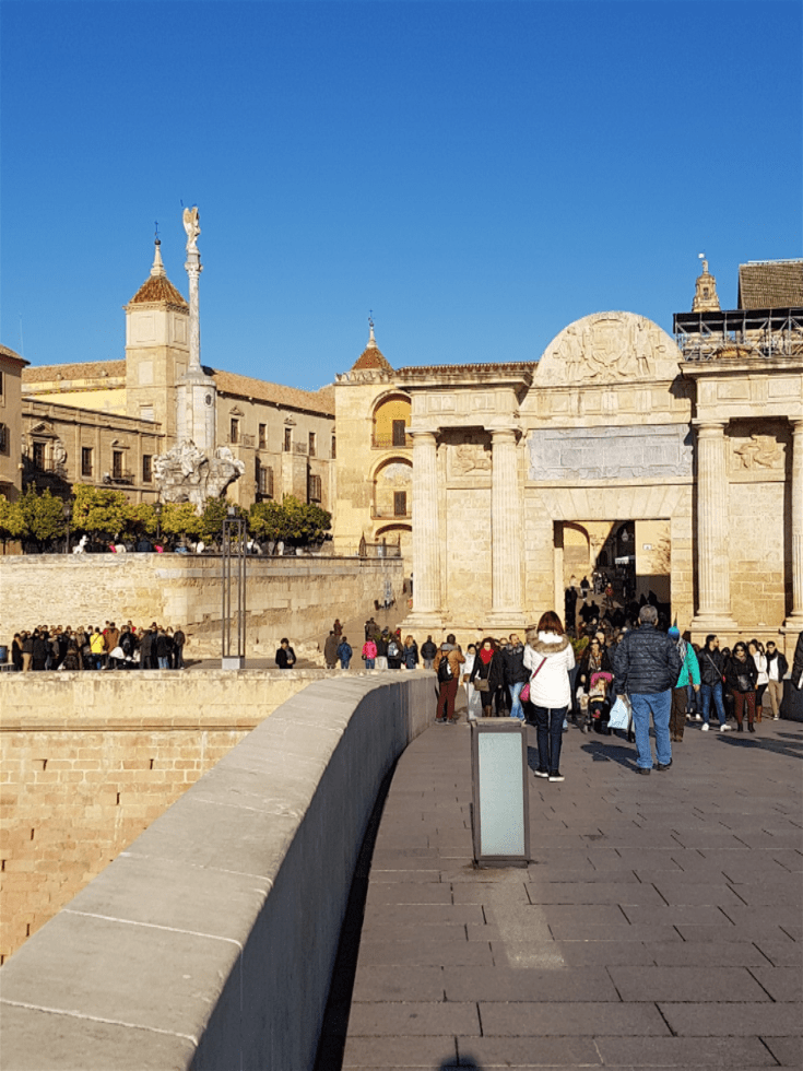 The bridge was built over the Guadalquivir river on the command of the Roman emperor Augustus, although it’s safe to say that most of the original bridge has been repaired and restored over the past thousand years or so. Today’s bridge is based on 16 ancient Roman foundation sections with the river flowing freely between the arches. The Roman Road, the Via Augusta, linkingRome with the coastal port of Cadiz, passed through Cordoba and the bridge was constructed to allow both traders and armies to travel freely throughout this far flung section of the Empire.
