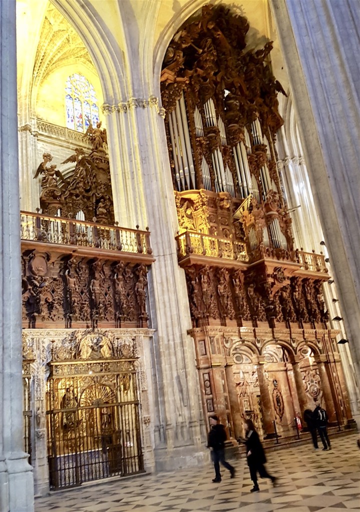 The sheer size of the place became evident once we were inside, even with hundreds of other visitors wandering around. In area, only St Paul’s in London and St Peter’s Basilica in Rome are larger, but if rated by volume, not just area, Seville takes the crown.
