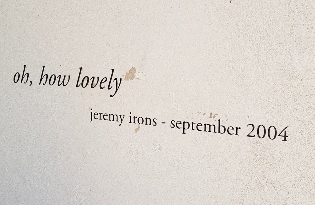 We reach the main quay in the town centre and decide to have a cool drink then wander the narrow streets to look at the shops. It’s only a small town, easily walked around, but the hill looms above and we congratulate ourselves on not having to make the journey up to the top car park. We passed Fowey’s oldest building, the Well House, which was built in 1430 and is now a B&B and a hand painted sign on a wall reading ‘oh, how lovely,’ – Jeremy Irons’, which I am unable to reference, but I like it.