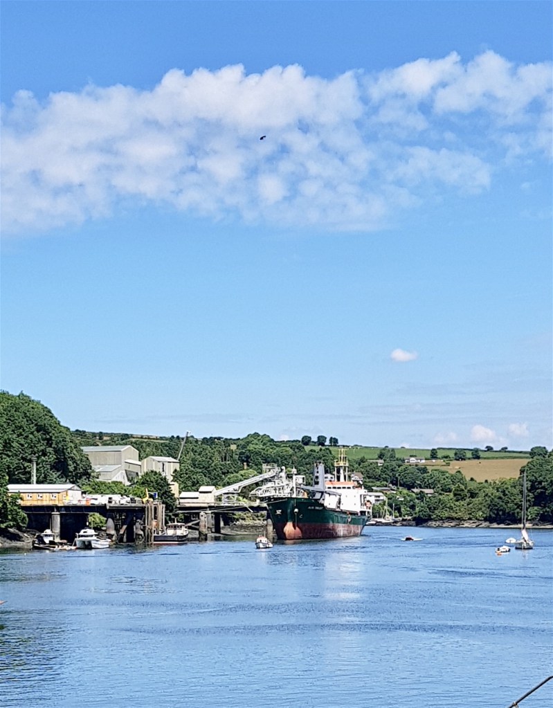 Fowey is very much a ‘boat town;’ dozens of craft in view today, ranging from tiny skiffs to larger yachts and the odd freighter bound for the china clay wharfs being manoeuvred into place by tug boats.