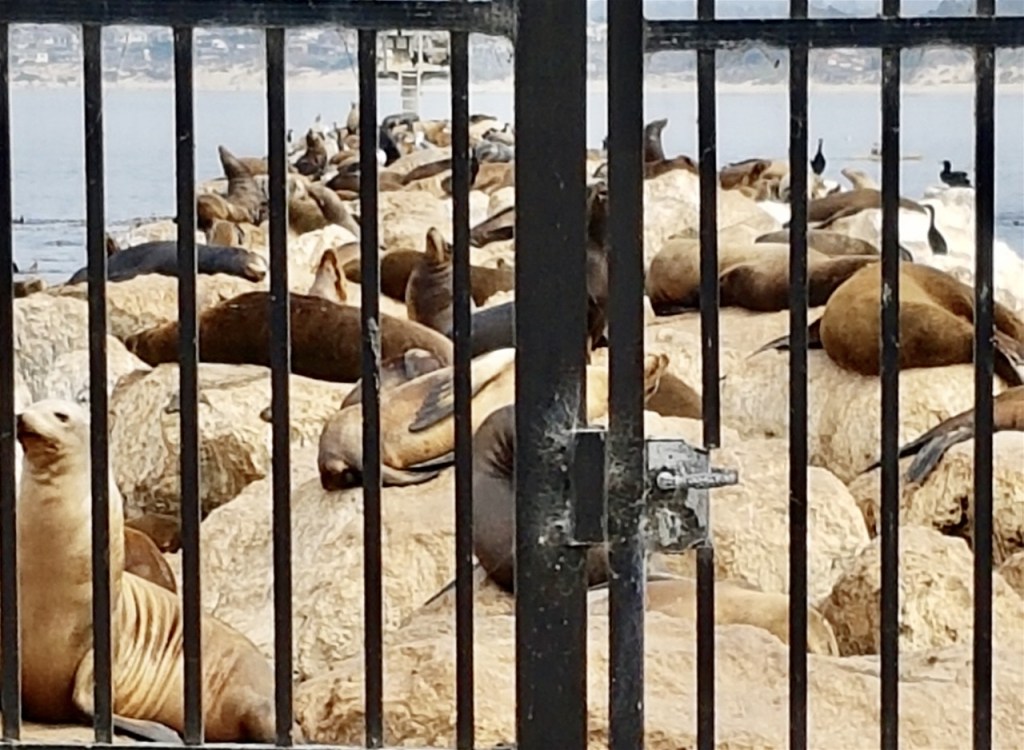 Cannery Row in Monterey was just so interesting. We walked along the boardwalk, down by the sea, (think there is a song there, or very close to one). We sniffed them even before we heard the barking. What a noise. Hundreds of sea lions, sunbathing, fighting and swimming. Never realised how huge they are. Their flippers are hand shaped with nails. Loved them. There was a picture of one on a golf course! You certainly wouldn’t tell it to clear off.