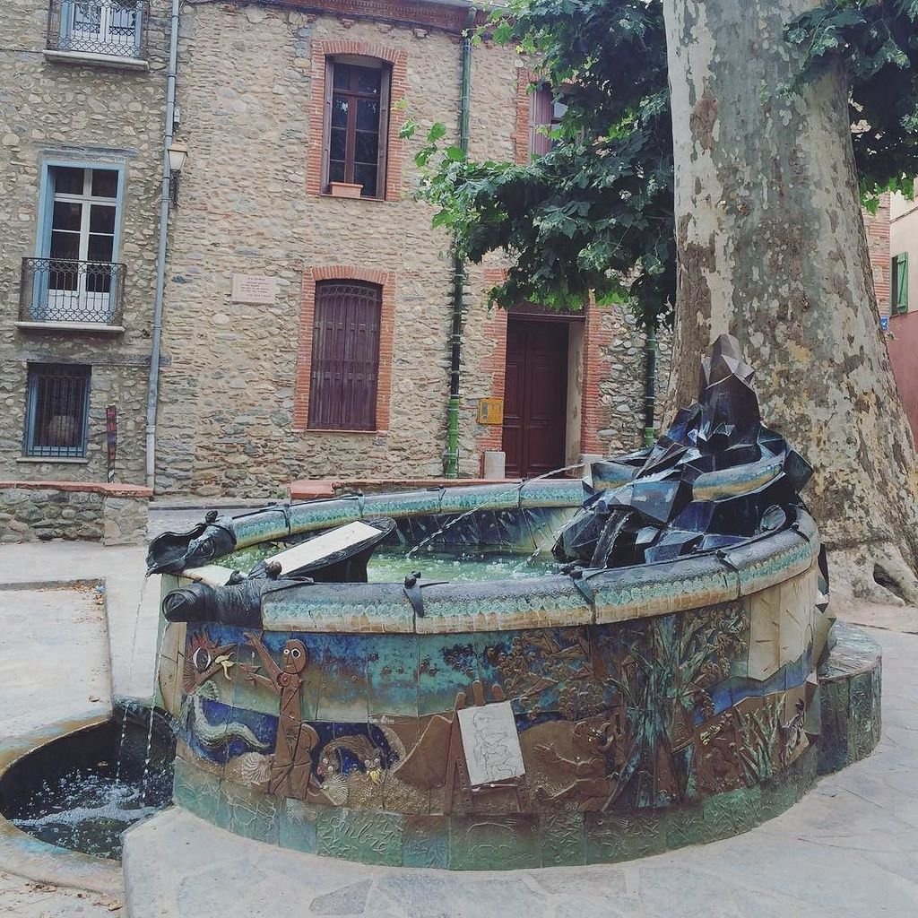 We wandered around, peeking into dark doorways and exploring side streets, remembering familiar sights and discovering new ones. The fountains are lovely on a hot day, especially the Pablo Picasso fountain. Picasso lived and painted here as did Dali, Matisse, Dufy and the poet and writer Jean Cocteau. Ceret is supposedly where the Cubist Movement in art began and the museum of modern art is right in the town centrepiece. The Grand Caf is still here and was where the artists used to meet up. I found an old photograph of Picasso seated in the caf and was intending to sit in the same place as the great man and sip a coffee. Sadly, the owner moved us on as a party had reserved all tables for lunch. We went to the Cafe Pablo instead.